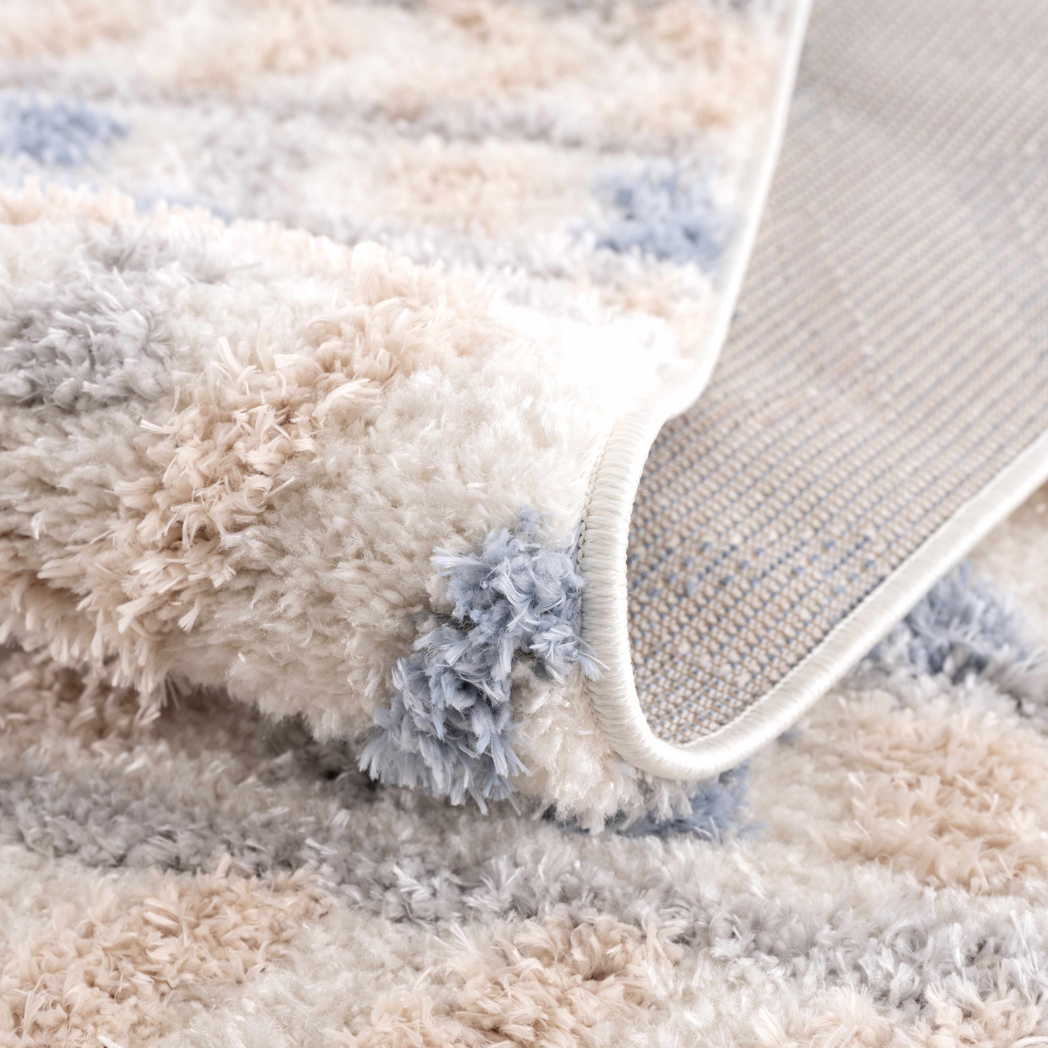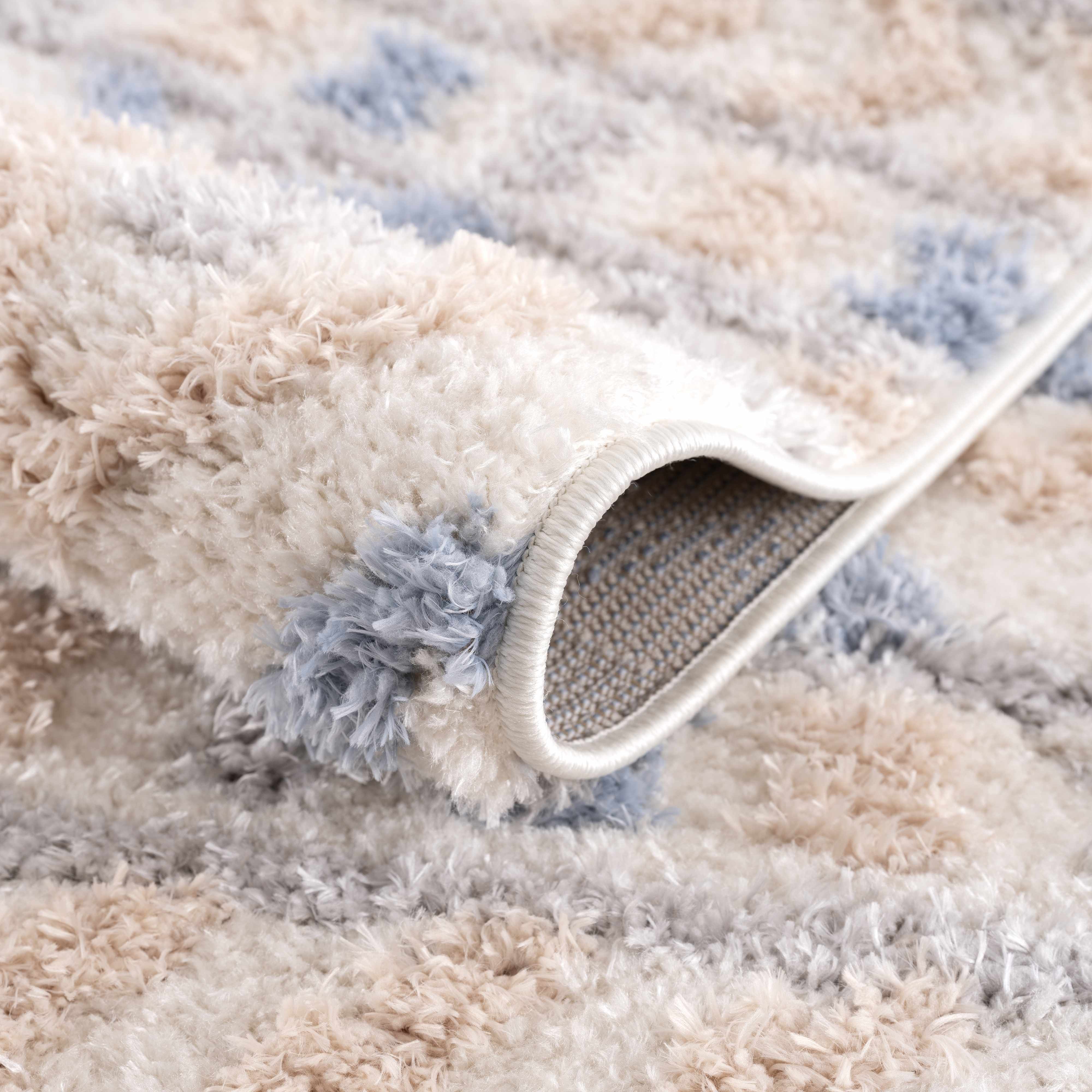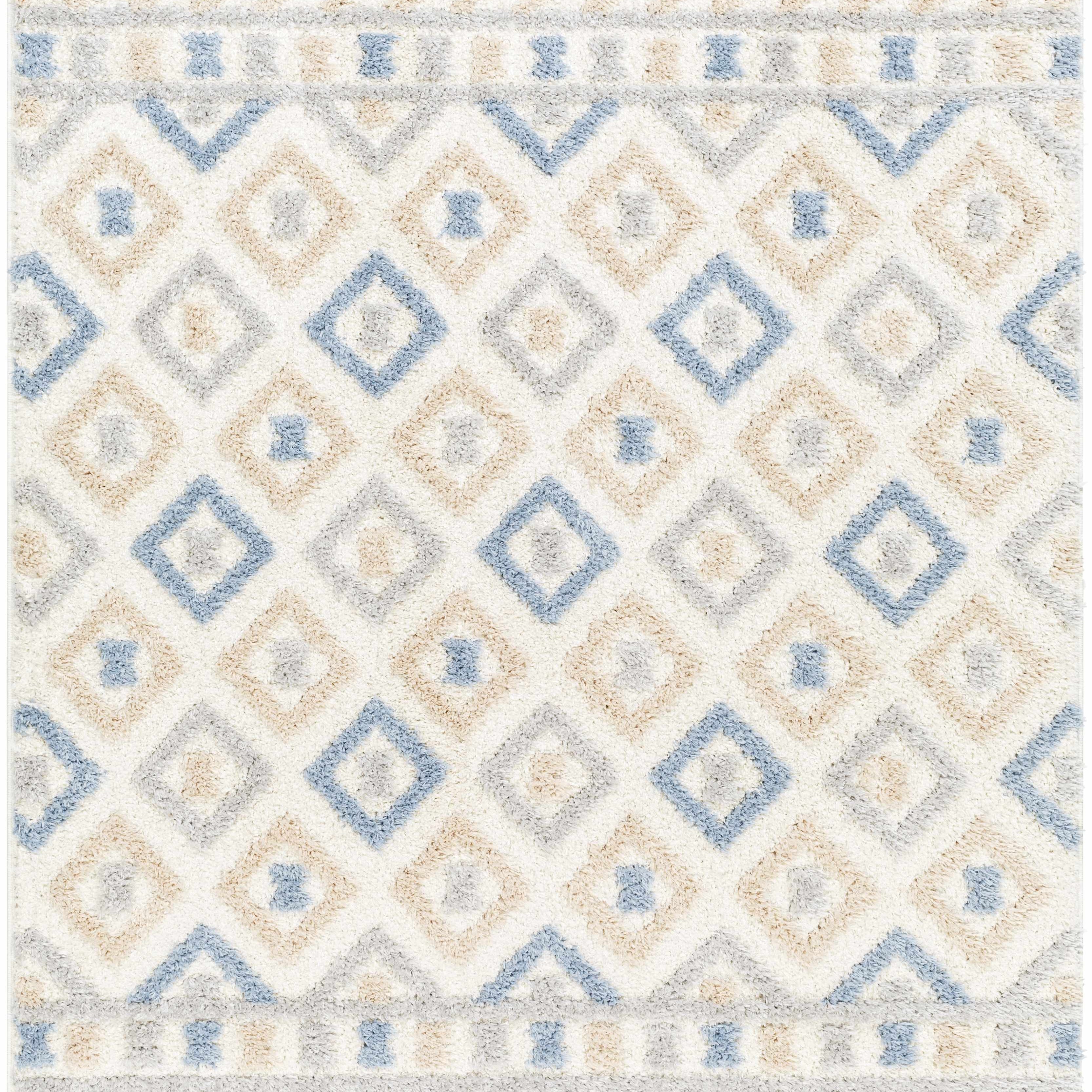 About: The Eivin Pink & Blue Area Rug boasts elegant diamond patterns in plush pile, combining Moroccan and geometric design influences. The beige background highlights soft blue and cream tones, offering a soothing, stylish aesthetic. Its plush texture ensures a soft and luxurious feel underfoot, making it perfect for enhancing any space with both comfort and elegance.